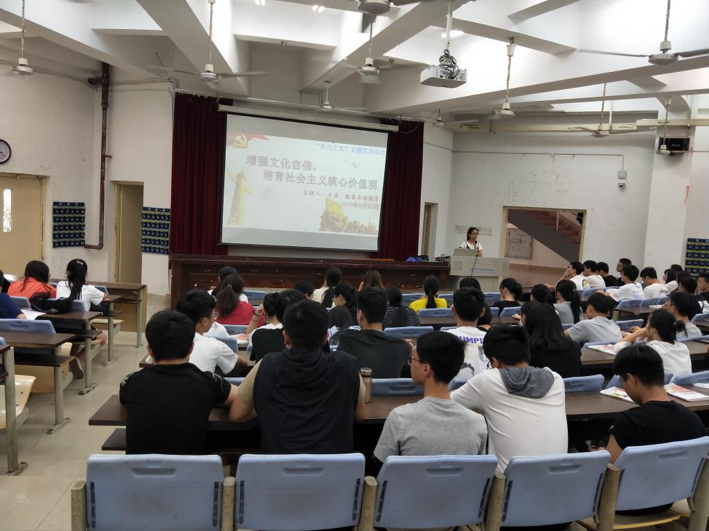 为响应团省委、团市委及我院团委关于开展“青春心向党 建功新福建”千场“青马之光”主题宣讲活动的号召,5月21日下午,健康与保健系在明德楼105开展了主题为《增强文化自信 培育社会主义核心价值观》主题宣讲活动,2018级高职针灸推拿一二班共110个学生出席聆听此次宣讲。