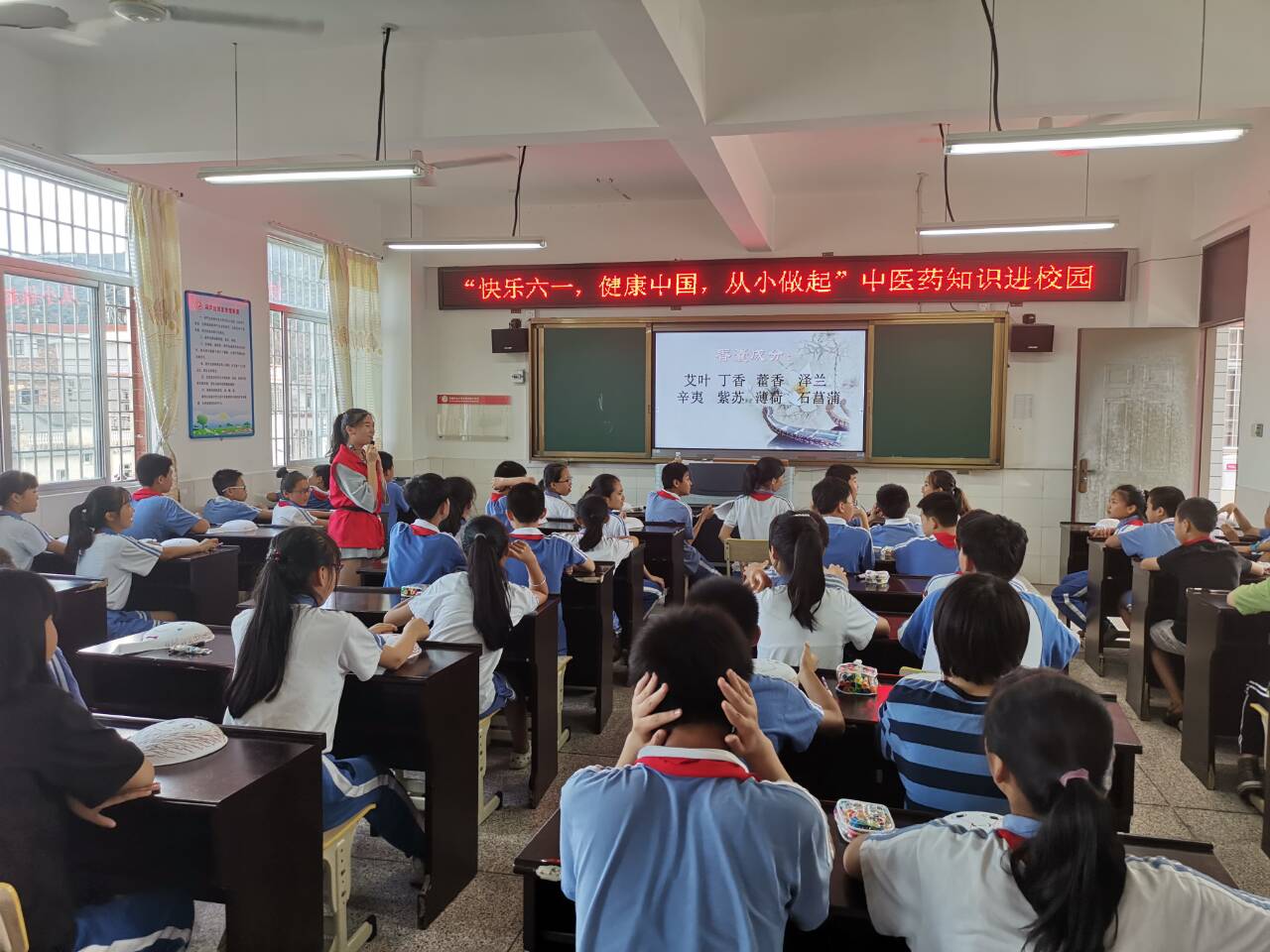 5月31日下午,为实现我院与天宝中心小学、浮宫中心小学、东园中心小学的共建活动,健康与保健系团总支学生会部分志愿者在龙海市东园中心小学开展“‘快乐六一,健康中国,从小做起’中医药知识”,健康与保健系副主任和学生处老师带队参加。