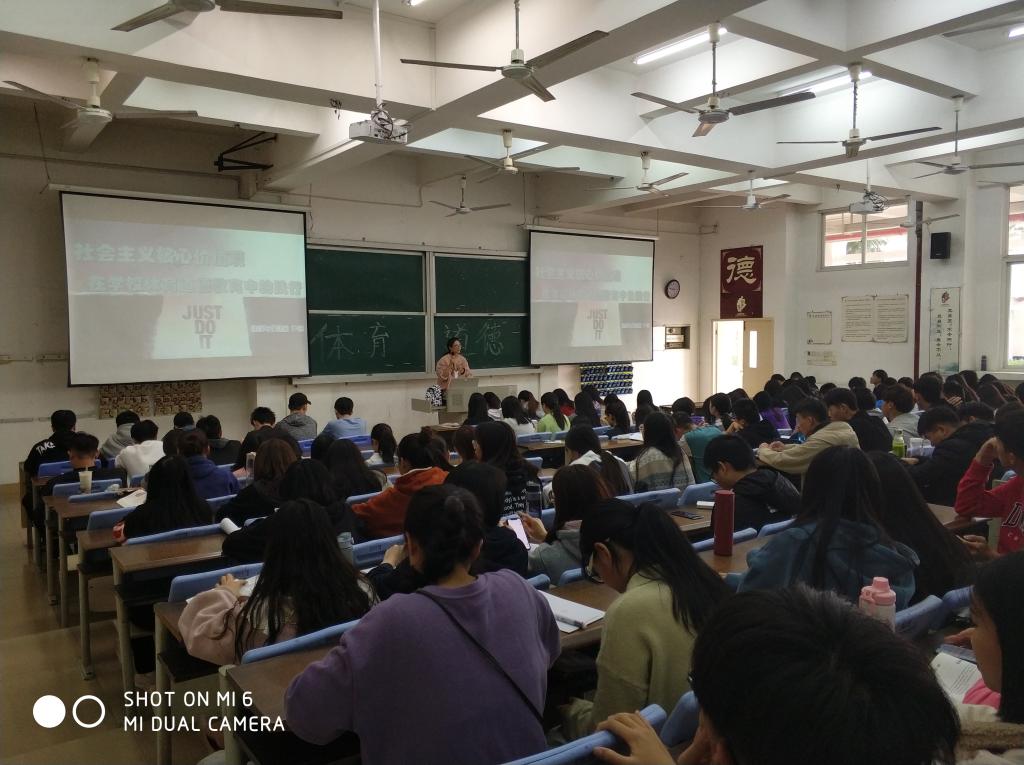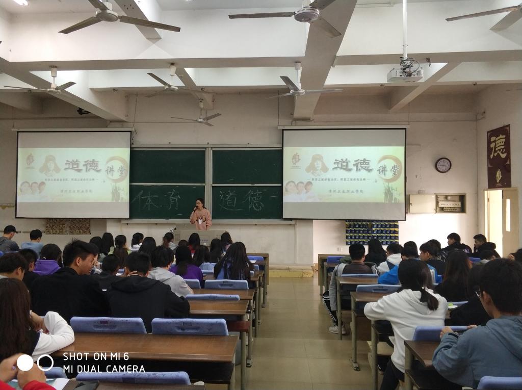 12月10日下午,健康与保健系在明德楼104开展道德讲堂活动,主题为《社会主义核心价值观在学校体育道德教育中的践行》。本次道德讲堂由体育教研室主任主讲,健康与保健系160名同学参加。