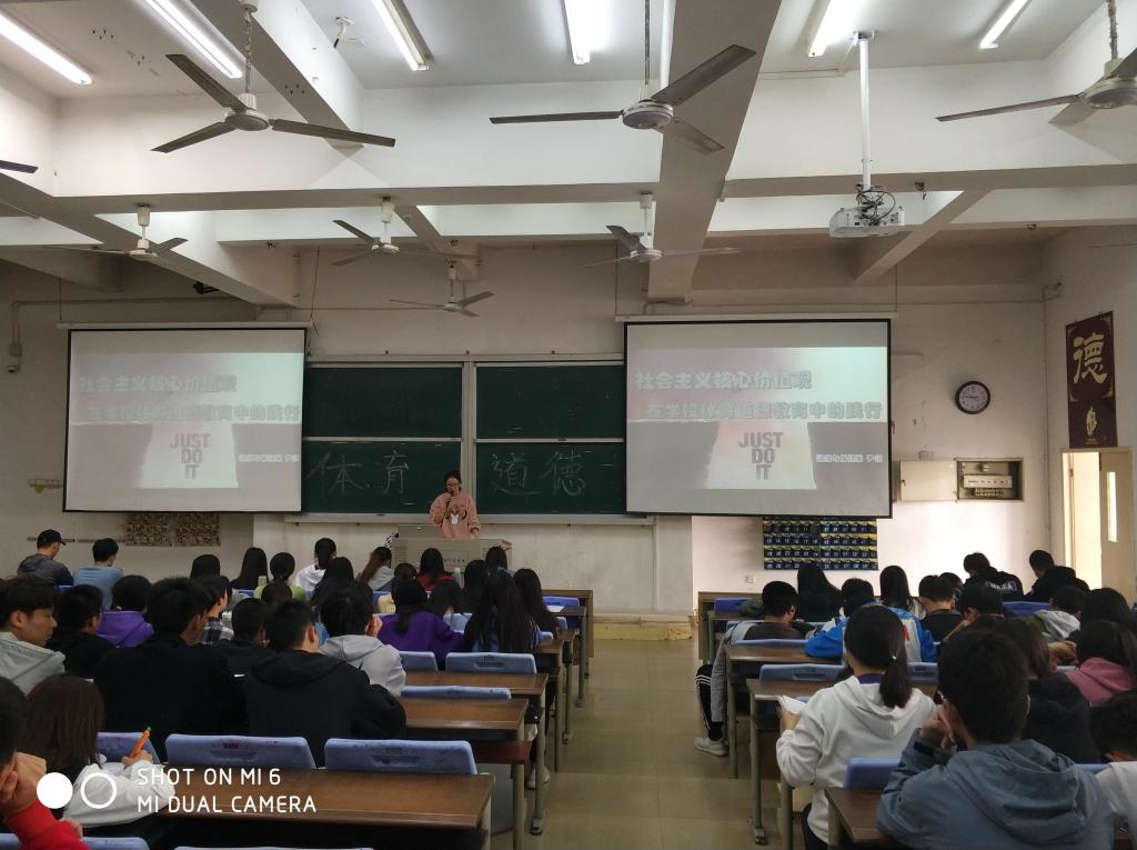 尹老师从“社会主义核心价值观的内涵”及奥林匹克精神讲起,陈述体育道德的内涵及基本规范:热爱体育事业,勇攀世界高峰;刻苦训练,钻研技术;不伤对手,公平竞争,尊重裁判;对教练工作认真负责,做好日常训练、临场指挥和赛后总结;裁判执法公正等。紧接着,尹老师列举了体育道德在社会主义核心价值观的具体体现及在校园中常见的体育道德的失范行为,引发同学们思考如何从自身做起,用社会主义核心价值观践行体育道德规范行为。与会同学们积极参与互动,讲座精彩纷呈,同学们受益匪浅。