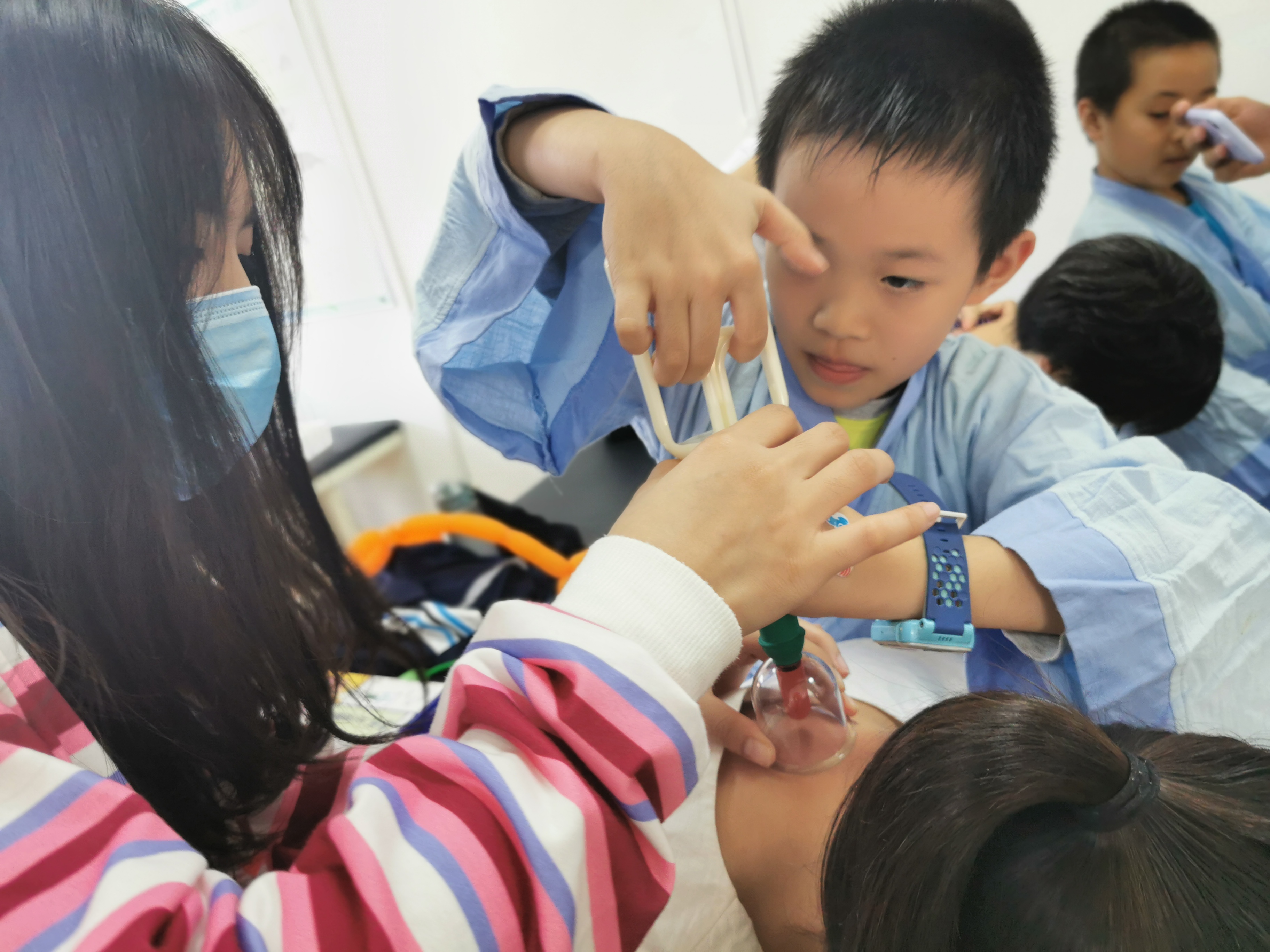 此次活动中,“小中医们”是在志愿者的带领下游览百草园与杏林学堂,在主持人的讲解下了解中医中药;紧接着来到致馨楼画脸谱,识穴位;“小中医”们来到气罐室,学拔气罐;在主持人的带领下来到模拟康复医院进行参观、了解、体验康复项目;最后,由志愿者们为“小中医”们颁发奖状,拍照留念。