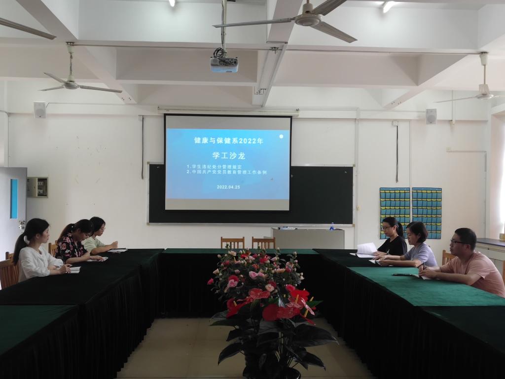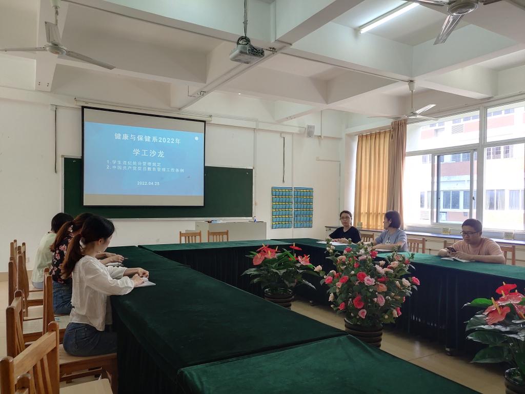 4月25日,健康与保健系在致贤楼301开展学工沙龙活动,学工队伍全体成员参加此次活动。