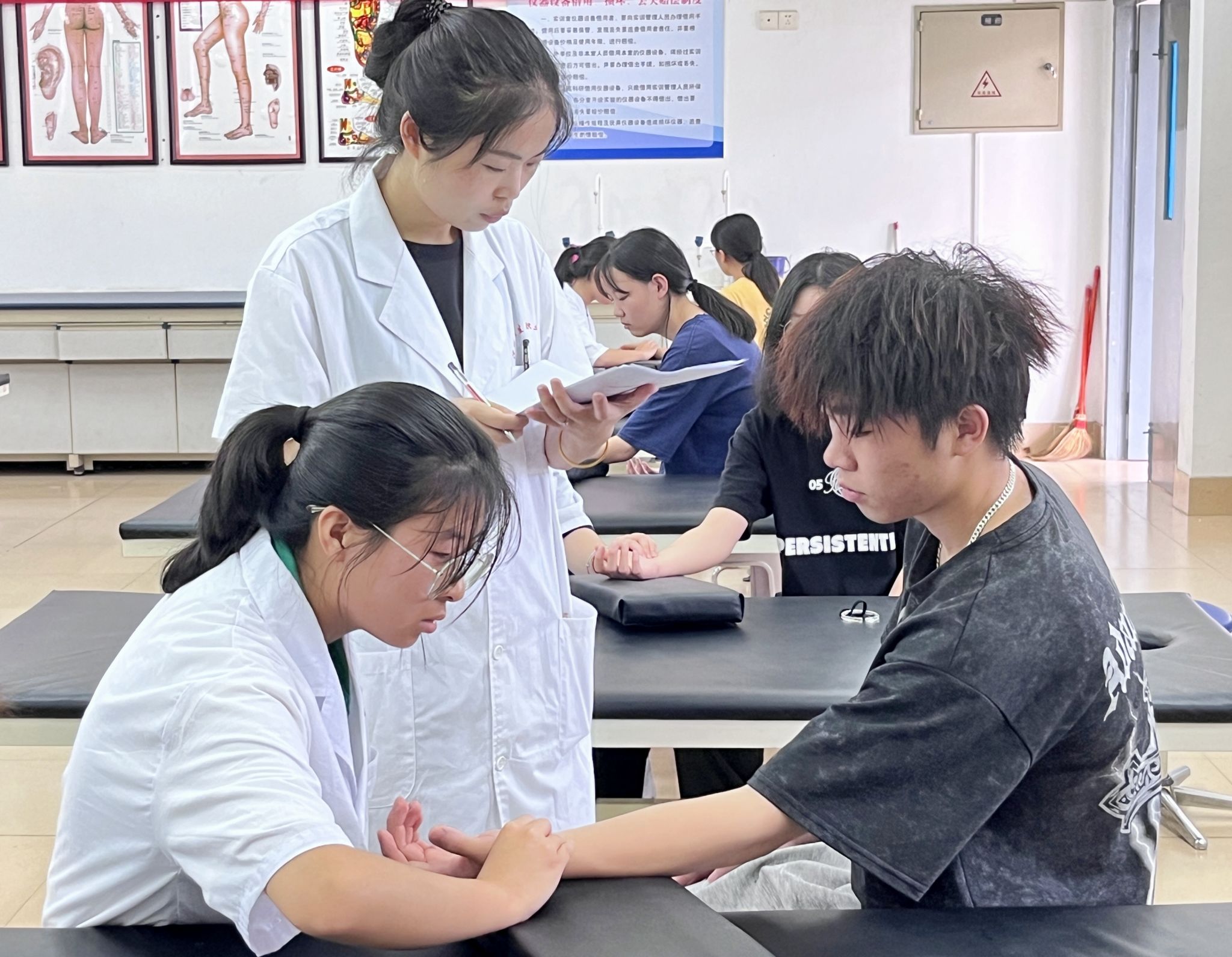 为弘扬和传播中医文化,提升学生临床实践能力,健康与保健系于6月8日举行2023年“中医四诊”技能大赛,2021级中医学专业全体学生参加本次比赛。