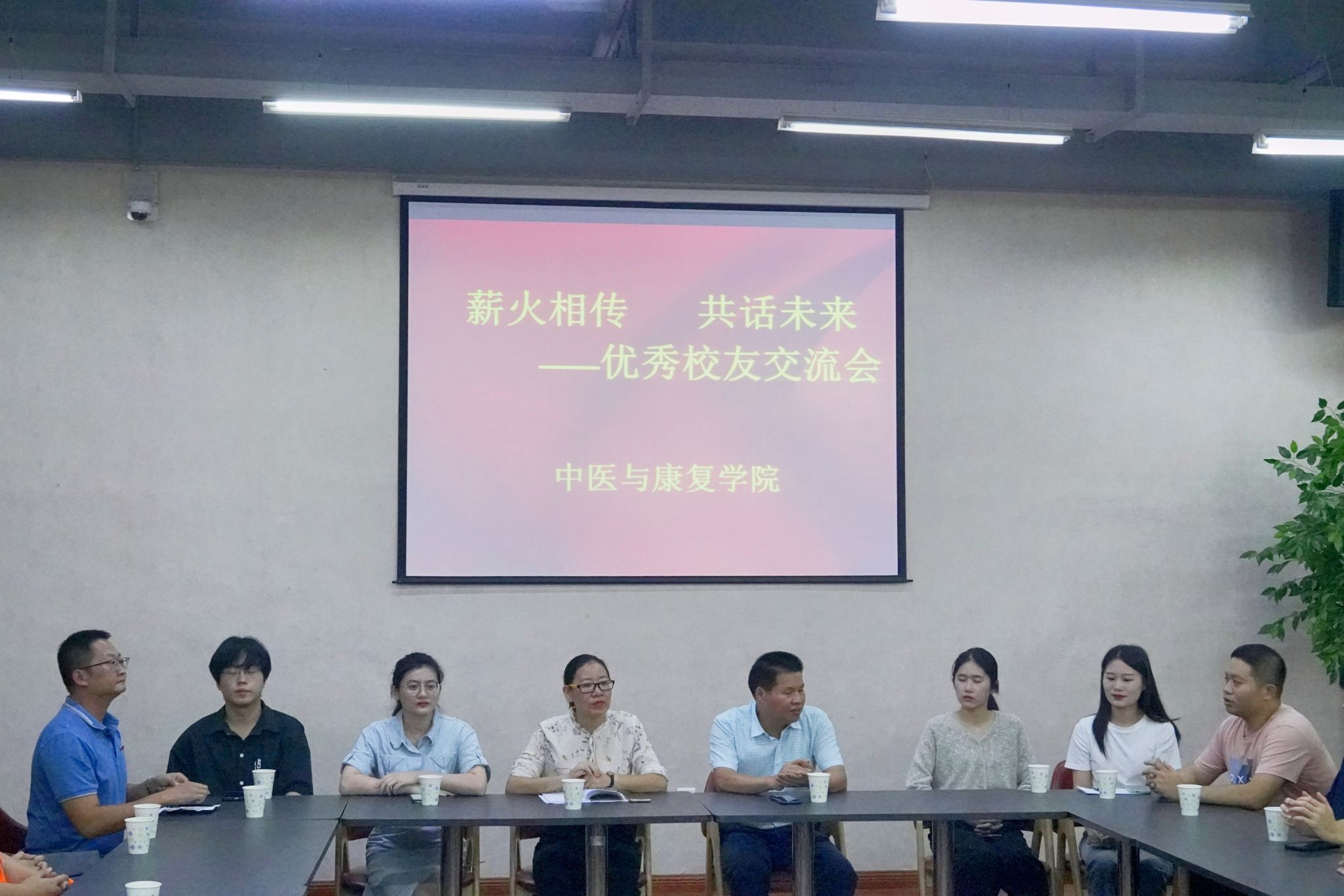为充分凝聚校友力量,发挥校友榜样作用,推动习近平新时代中国特色社会主义思想主题教育走深、走实,10月24日下午,中医与康复学院在图书馆书吧举办“薪火相传  共话未来”主题优秀校友座谈会。学院党政领导班子、辅导员代表及各专业学生代表参加本次交流会。