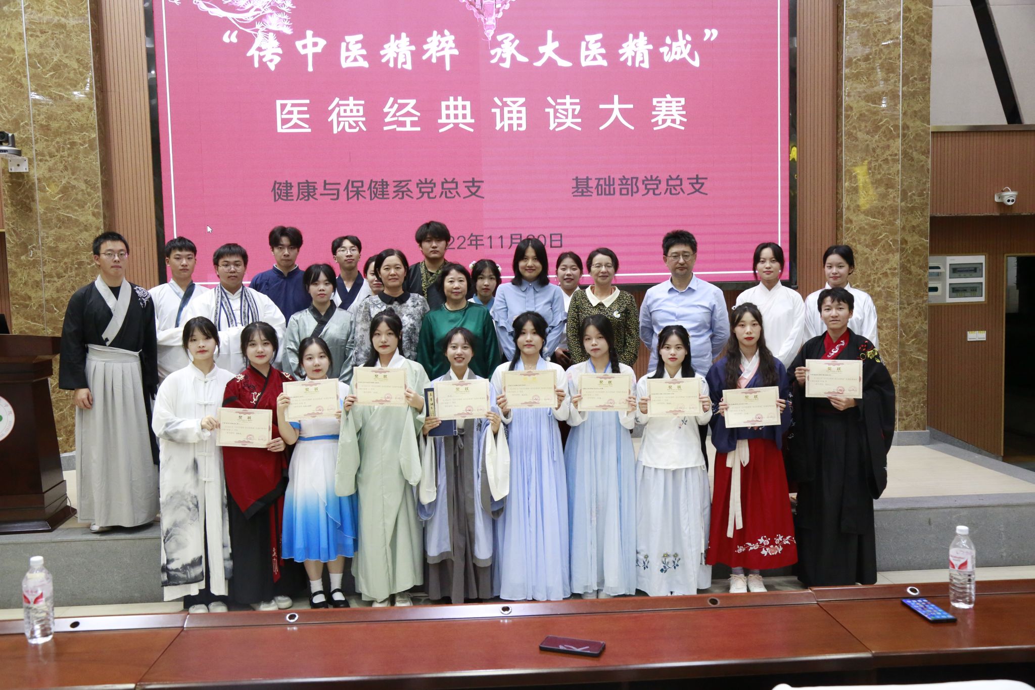 11月20日晚上,健康与保健系党总支联合基础部党总支举办“传中医精粹.承大医精诚”医德经典诵读大赛。