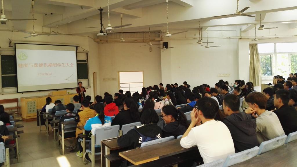 2月17日下午,健康与保健系在明德楼九教召开新学期期初全系学生大会,沈小美副院长出席会议并做讲话,系副主任、系党总支副书记、学工办和辅导员参加会议。