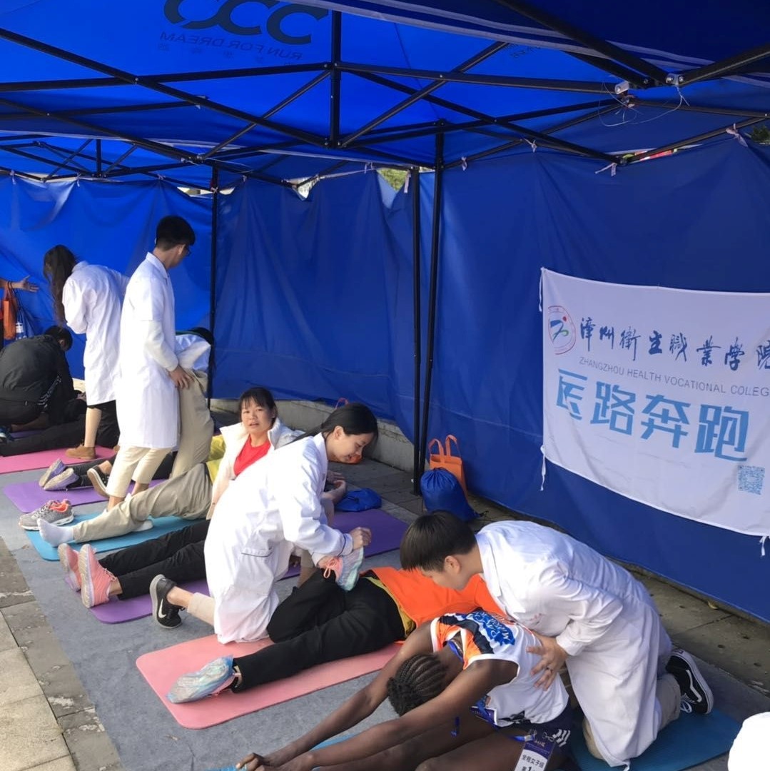 为切实做好此次土楼马拉松的医疗保障工作,我院健康与保健系医疗保障服务团队和“医路奔跑”团队共10余名志愿者应邀前往。此次土楼马拉松赛后服务由健康与保健系教师带队,充分发挥教师模范作用,不仅为运动员带来了专业的运动康复拉伸和中医的传统疗法等,更体现出专业特色反哺社会,理论与实践相结合,通过志愿服务,扩大我院影响力。