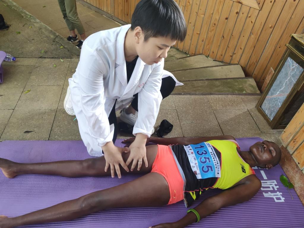 江碧鸟逾白,山青花欲燃。参赛选手穿梭绿水青山间置身于“美丽休闲乡村”,陶醉于沿途秀丽美景,尽情地放飞自我!运动健康防护团队服务现场,我院志愿者严格遵守赛场和志愿者基本准则,为国内、外的顶级运动员及专业跑者进行中医推拿、肌肉牵伸、贴扎等赛后保障工作,有效为运动员们缓解了肌肉酸痛等情况。此次志愿服务受到漳州地方电视台的媒体采访,并获得组委会的一致认可与好评!