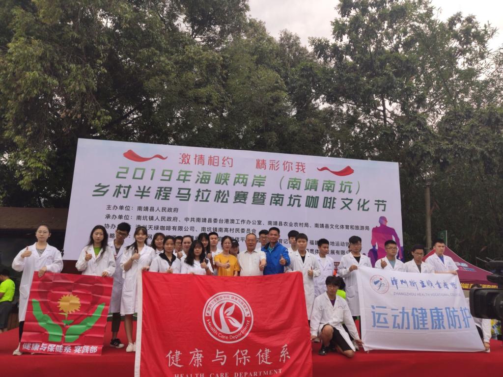 5月1日上午8时,2019海峡两岸(南靖南坑)乡村半程马拉松赛暨南坑咖啡文化节在南靖南坑开跑,来自海峡两岸共800选手(其中30名台湾籍运动员)参赛。我院运动健康防护团队为此次赛事活动提供赛后运动员保障工作,服务达600人次。