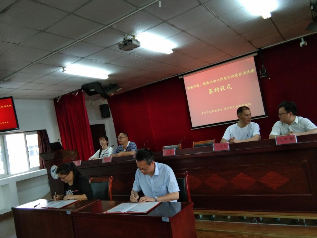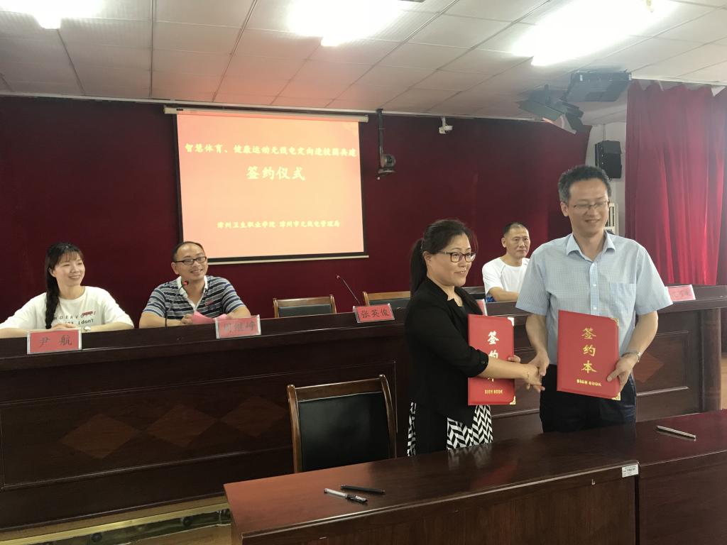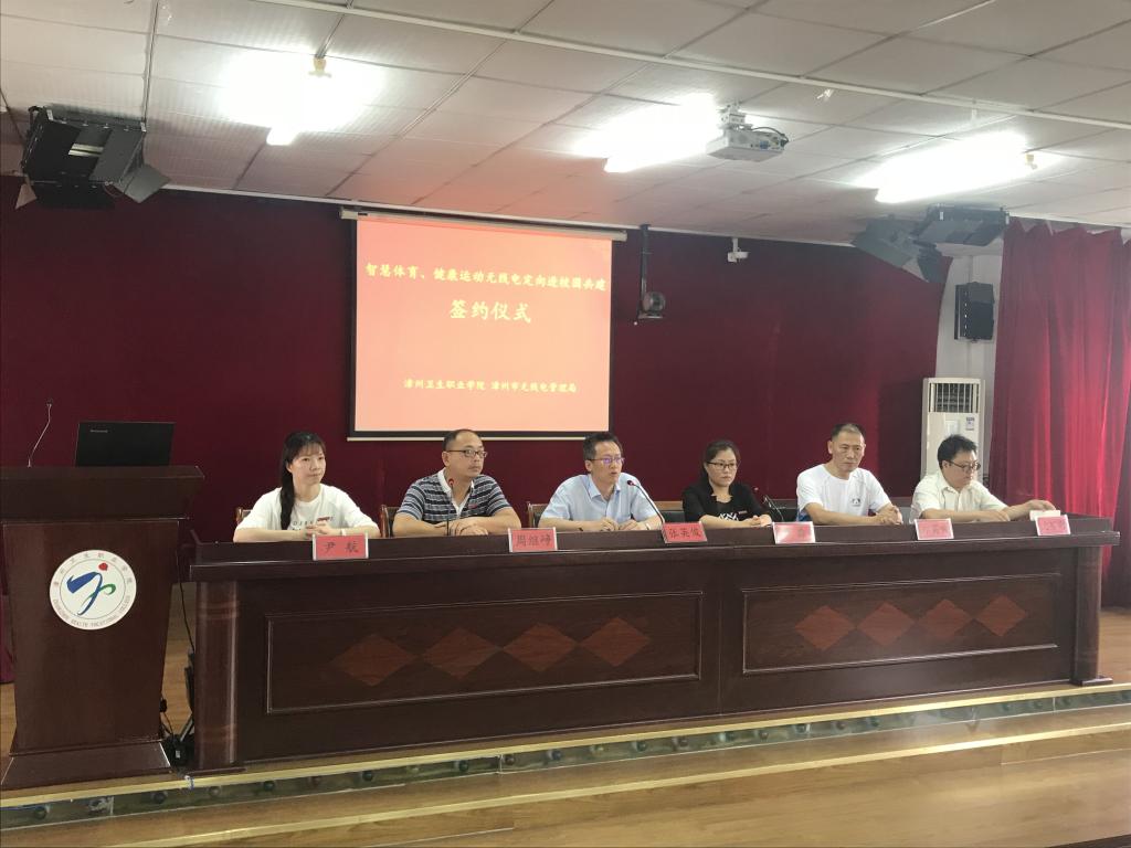 5月15日上午,健康与保健系与漳州市无线电管理局举行“‘智慧体育、健康运动’无线电定向进校园”的共建合作协议签订仪式,我院成漳州首个“无线电定向运动进校园”共建单位。市无线电管理局张英俊副调研员、沈可衡副主任、健康与保健系李淼副主任、周继峥副书记及体育教研室负责同志参加签约仪式。