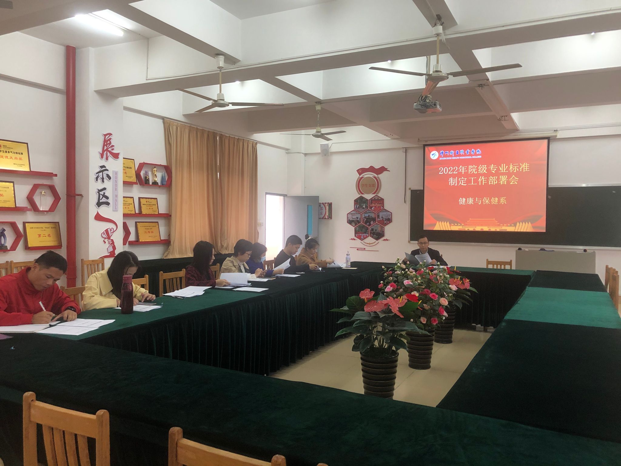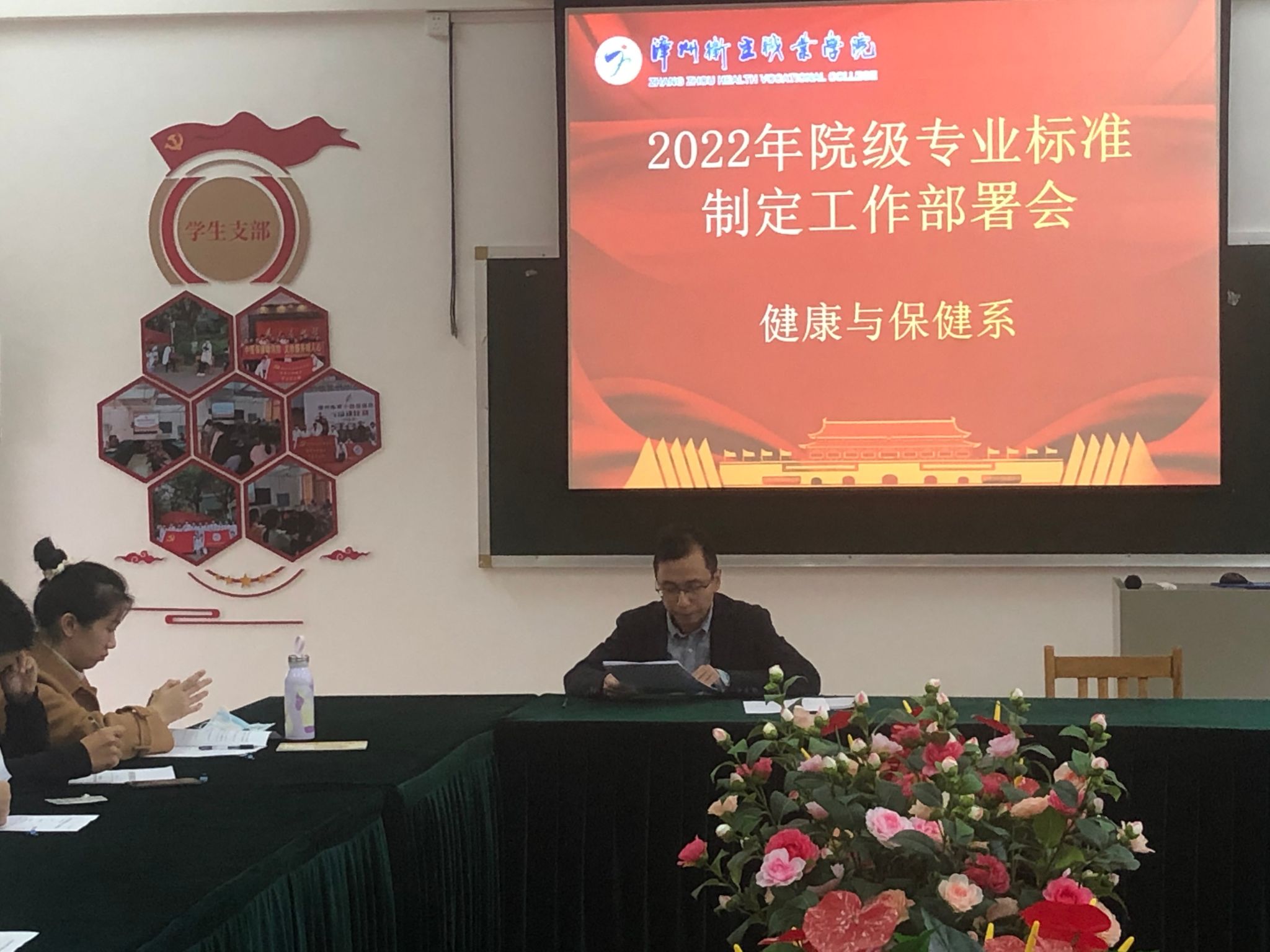 2022年12月6日下午,健康与保健系在致贤楼301会议室召开了院级专业教学标准制订工作部署会,会议由副主任主持,康复治疗技术专业、针灸推拿专业、中医专业和运动防护专业带头人和骨干教师参加了会议。