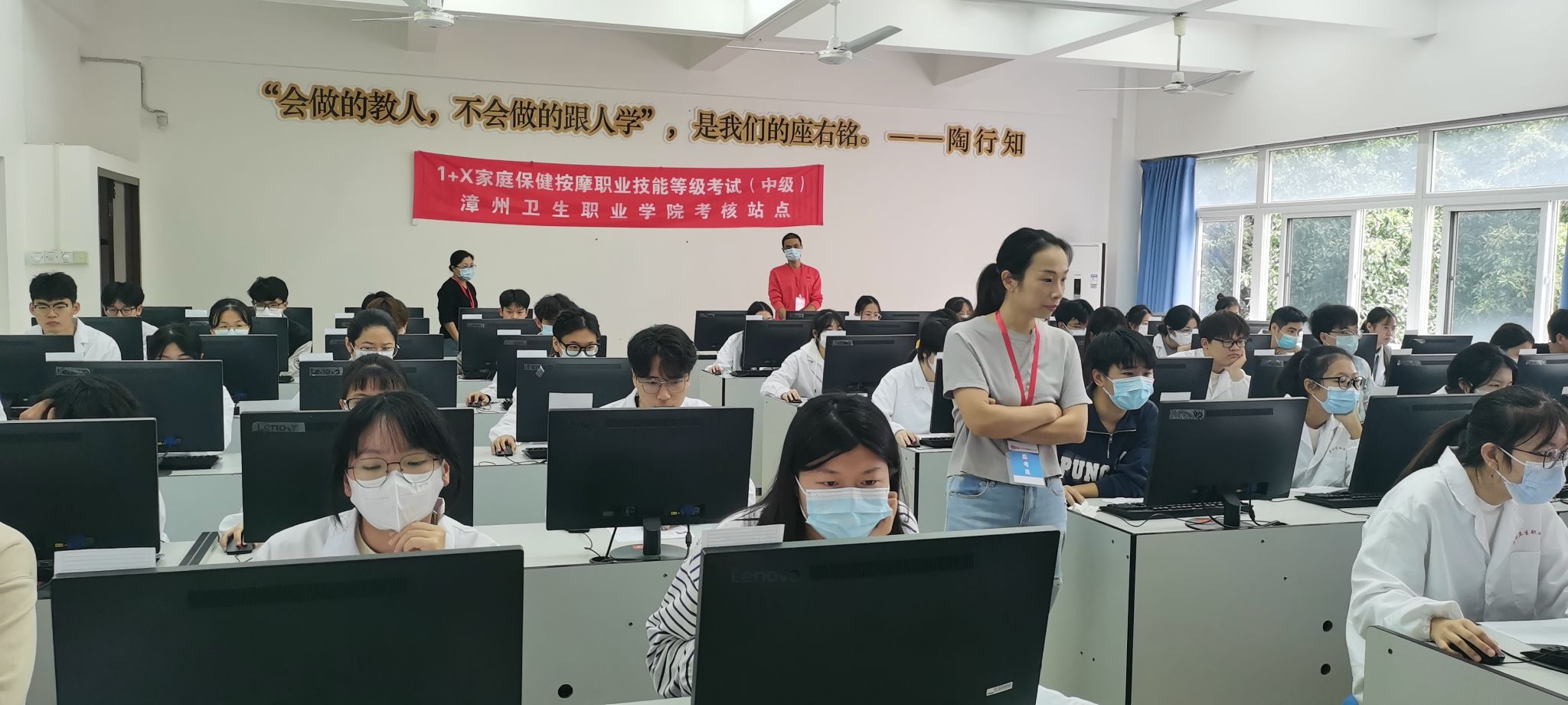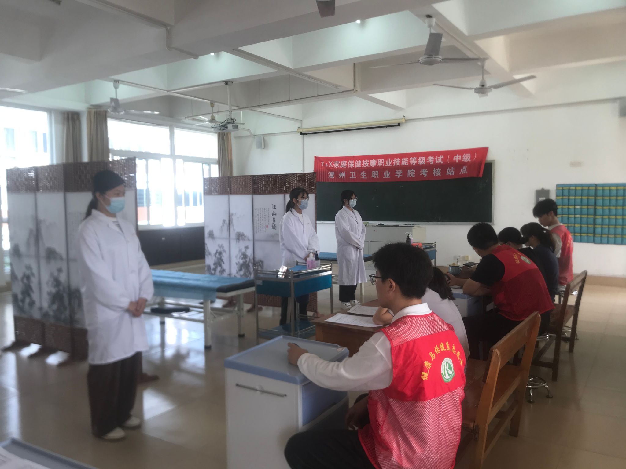 近日,“1+X”家庭保健按摩职业技能等级考试(中级)在明诚楼和致贤楼顺利举行。共有2021级针灸推拿专业的50名学生参加此次考试。