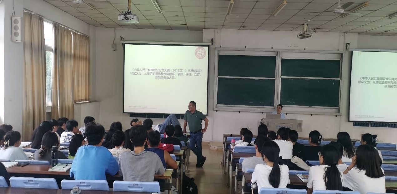 活动中,来自广东特乐扩运动防护研究院的黄信嘉老师对我系运动防护专业进行深入指导,围绕专业相关证书、专业技术特点、就业方向、就业前景等方面为同学们进行了详细的解答,进一步端正了同学们的专业思想,加深同学们对本专业的深入认识,明确前进方向,帮助同学们提前做好职业生涯规划。接着,罗长佳老师也为同学们详细介绍了特乐扩研究院,并对本专业需要具备的理论知识和专业技能进行了认真梳理,进一步开阔了同学们的视野,明确就业方向。最后,专业带头人林敏勇老师做了本次会议的总结发言,希望同学们珍惜学习机会,扎实掌握专业技能,为今后顺利打开工作路径奠定坚实的基础。