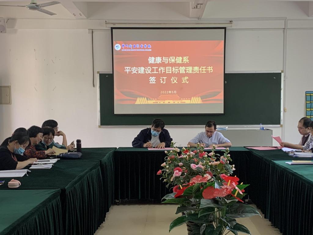 为了确保各项工作顺利进行,进一步明确各部门综治(平安建设)安全职责,增强教职工安全责任意识,5月3日下午,健保系在致贤楼301举行2022年综治(平安建设)工作目标管理责任书签订仪式。系部领导及系部全体教职工参加签订仪式。会议由系副主任主持。