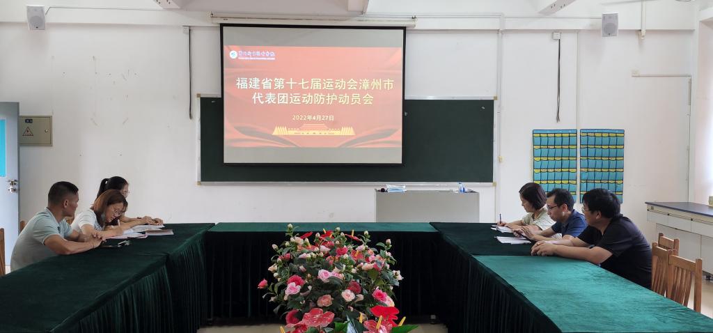 4月27日,福建省第十七届运动会漳州代表团运动防护动员会在致贤楼301召开,健康与保健系副书记、针康教研室、体育教研室相关教师参加会议,会议由健康与保健系副主任主持。