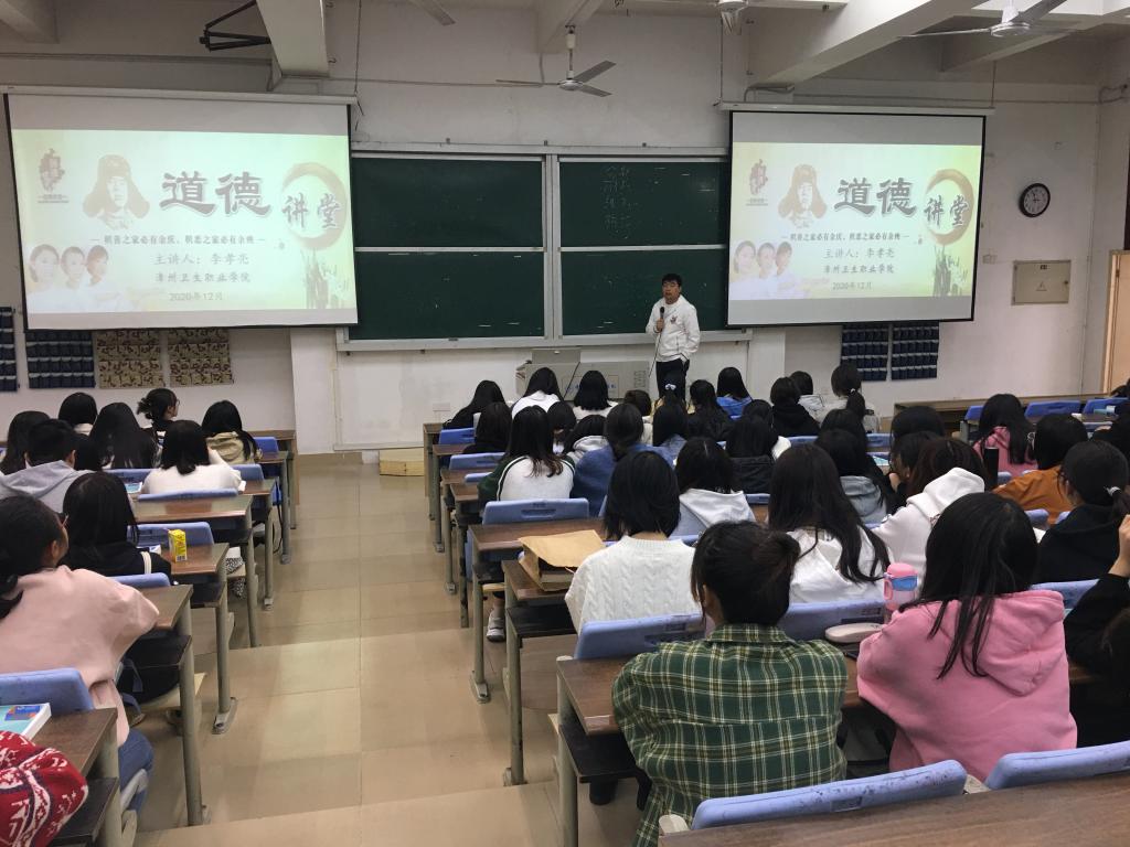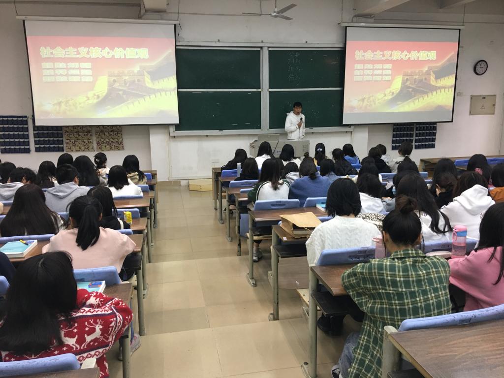 12月15日下午,健康与保健系在明德楼104开展道德讲堂活动,主题为《社会主义核心价值观在体育课堂教学中的践行》。本次道德讲堂由体育教研室副主任李孝亮主讲,健康与保健系160名同学参加。